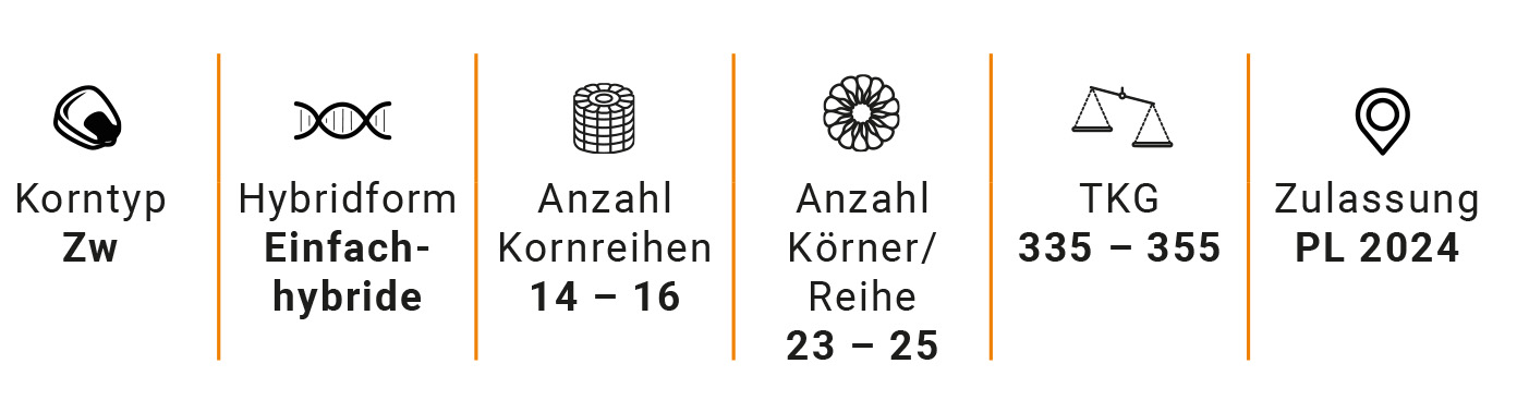 • Als Körnermais Scharniersorte zwischen frühem und mittelfrühem Segment